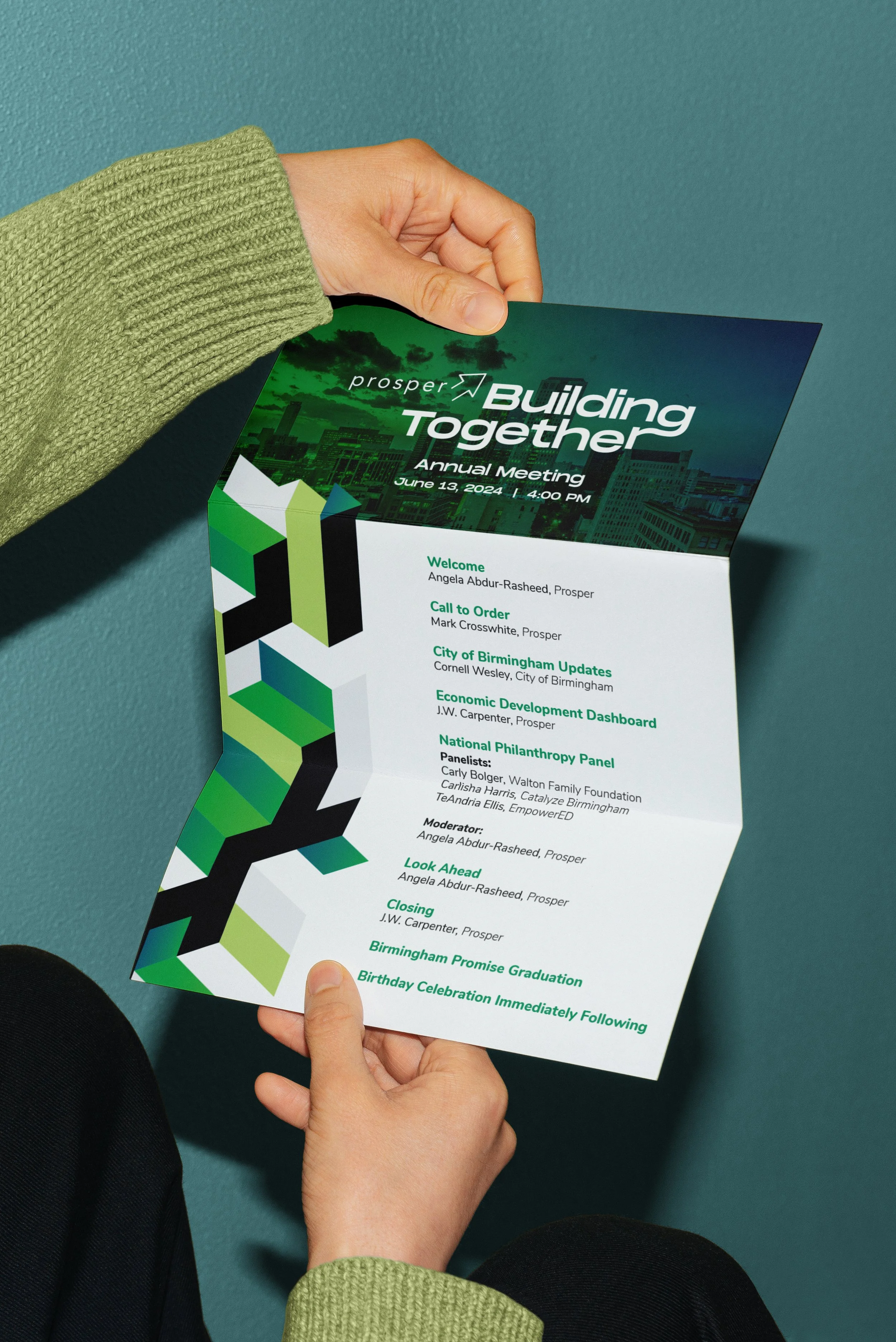 Prosper is a nonprofit with a vision to build the most inclusive and thriving economy by aligning Birmingham and Jefferson County around inclusive Job Creation, Job Preparation, and Job Access goals and strategies.
